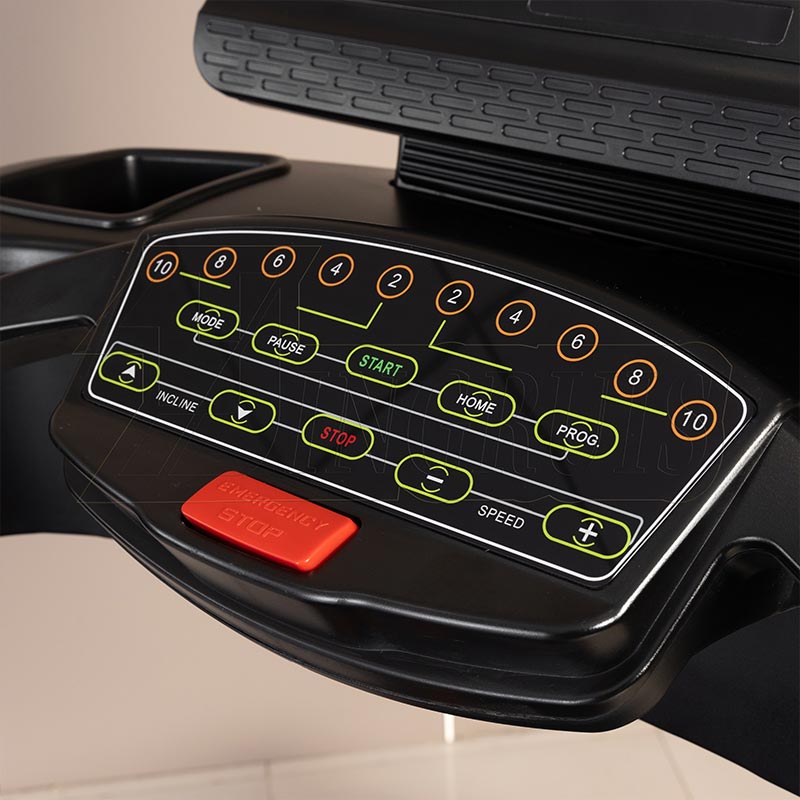 Nagtatampok ang Commercial Electric Treadmill ng malawak na laki ng running surface na 1600mm (haba) * 600mm (lapad), na nagbibigay ng maluwag na lugar para malayang tumakbo ang mga user. Mag-jogging man o sprinting, tinitiyak ng malaking lugar sa pagtakbo ang walang limitasyong paggalaw, na nagpapahusay ng kaginhawahan sa bawat sesyon ng pag-eehersisyo.